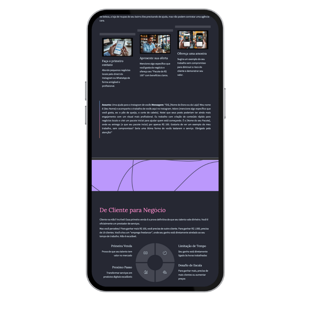 📱 100% com o celular: Não precisa de computador caro nem de equipamentos complexos. Se você tá lendo isso, já tem a única ferramenta que precisa.